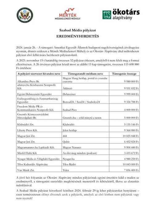Dollárokkal támogatott médiumok friss listája: