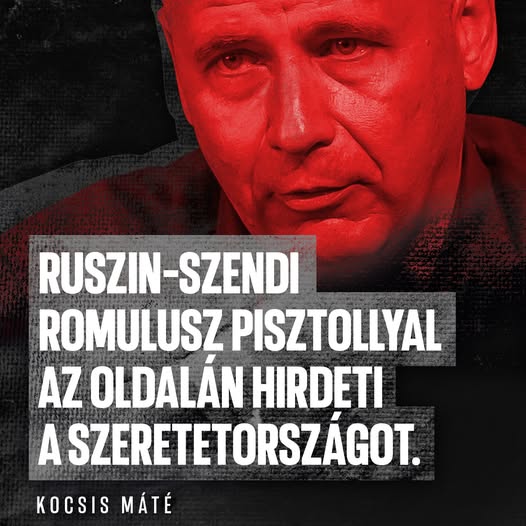 Ruszin-Szendi Romulusz pisztollyal az oldalán hirdeti a szeretetországot. Ilyen emberekre nem bízhatjuk hazánk jövőjét!