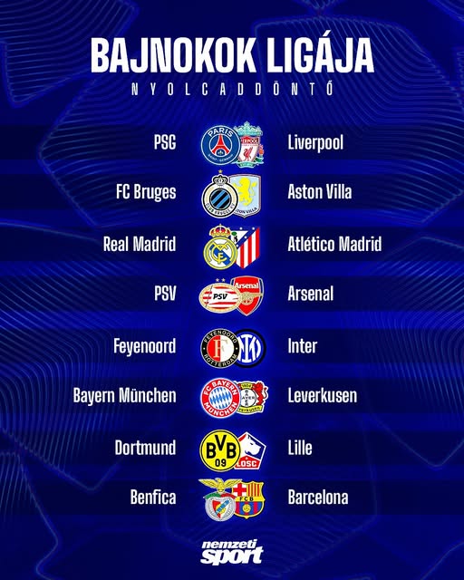 Sorsoltak a Bajnokok Ligájában: itt vannak a párosítások a nyolcaddöntőre!