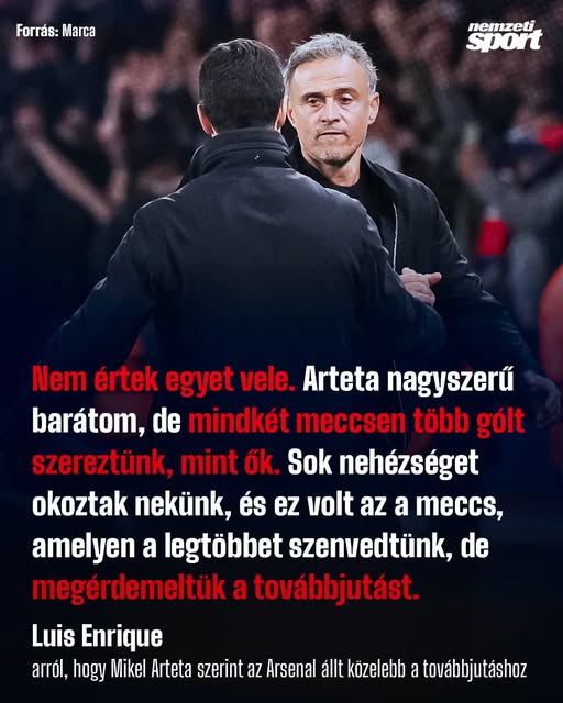 Luis Enrique vitába szállt kollégájával, Mikel Artetával, aki szerint az Arsenal közelebb állt a továbbjutáshoz.