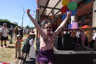 Steiner Kristóf, a felvonulás utáni program egyik műsorvezetője is feltűnt a Budapest Pride-on.