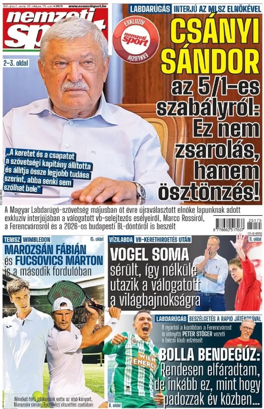 Csányi Sándor: Nem zsarolás, ösztönzés a „magyarszabály”; Vogel Soma sérült, lemarad a vb-ről – a szerdai Nemzeti Sportból ajánljuk