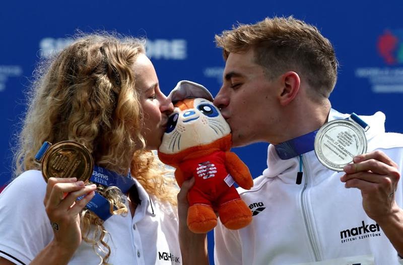 Nem kérdés, megvan a vizes vb egyik legaranyosabb fotója: a bronzérmes Fábián Bettina és az ezüstérmes Betlehem Dávid négy éve alkotnak egy párt. ❤️