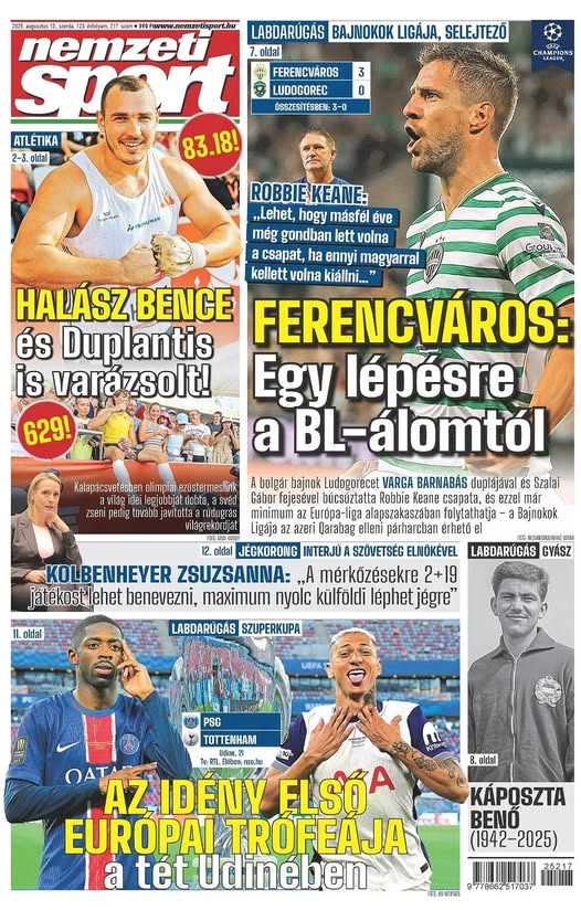 Visszatért a csúcsatlétika Budapestre!; A Fradi egy lépésre a BL-álomtól! 👇