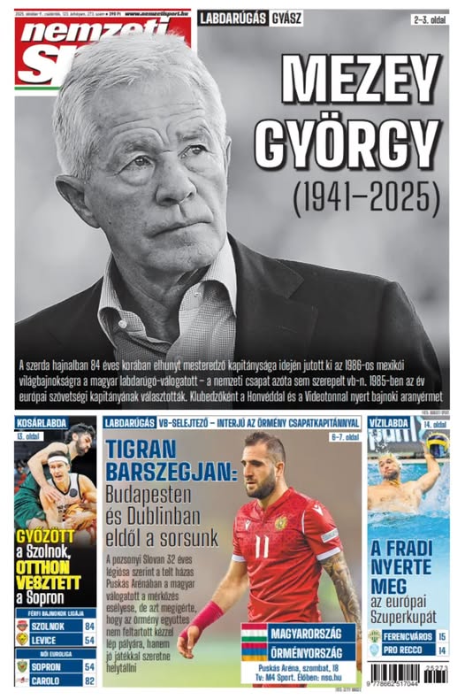 A pozsonyi Slovan örmény játékosa a szombati vb-selejtezőről; Mezey Györgyre emlékezünk – a csütörtöki Nemzeti Sportból ajánljuk: https://buff.ly/VORjdbC