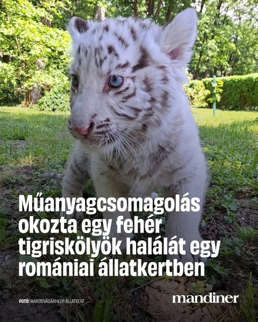 A látogatók által az állatok ketrecébe bedobott műanyagcsomagolás okozta egy fehér tigriskölyök halálát a dél-romániai Craiova állatkertjében. #mandiner #románia #tigris