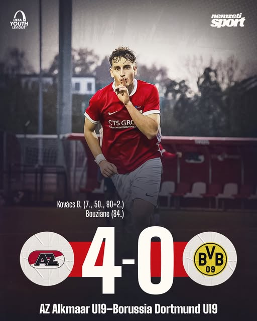 A 18 éves Kovács Bendegúz elképesztő teljesítményével kiütötte a holland AZ Alkmaar U19-es csapata a BVB ificsapatát az UEFA Ifjúsági Ligában!!