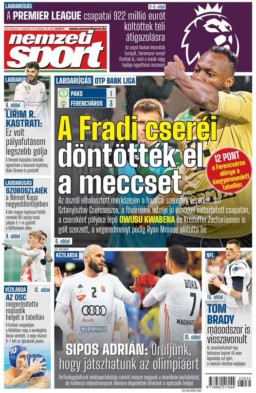 Letarolta a téli piacot az angol Premier League; Sipos Adrián: Örüljünk neki, hogy az olimpiáért játszhatunk! – A Nemzeti Sport csütörtöki számából ajánljuk: http://bit.ly/3WVLh9Y
