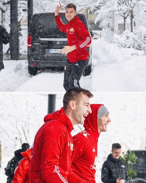 Habár a Bayern elleni mérkőzésük elmaradt, az Union Berlin játékosai kiélvezték a havazást Münchenben.