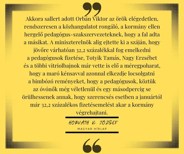 NAPI KOMMENTÁR. A miniszterelnök alig ejtette ki a száján, hogy jövőre mennyivel fog emelkedni a pedagógusok fizetése, a vitriolbajnokok már vették is elő a méregpoharat.