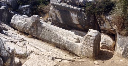 Egy ősi óriásszobor évszázadok óta a hátán fekszik egy dombon a festői szépségű görög szigeten, Naxoszon…