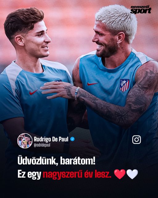 Rodrigo De Paul az Instagram-oldalán is köszöntötte barátját, Julian Alvarezt az Atlético Madridnál.