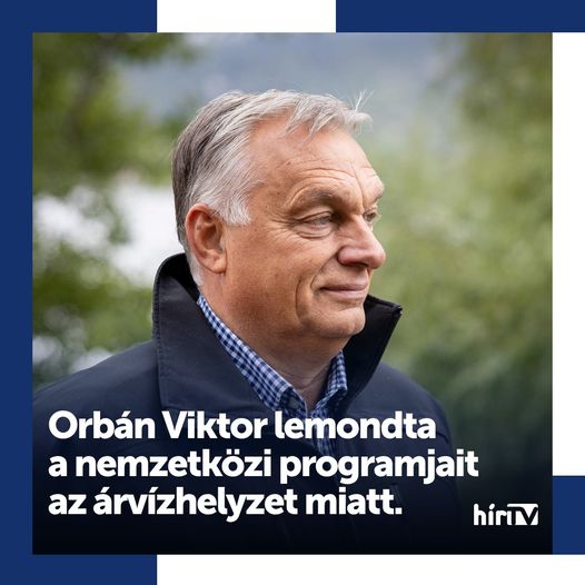 „A szélsőséges időjárási körülmények és a Magyarországon jelenleg is tartó árvizek miatt minden nemzetközi kötelezettségemet elhalasztottam” – írta Orbán Viktor miniszterelnök az X-en.
