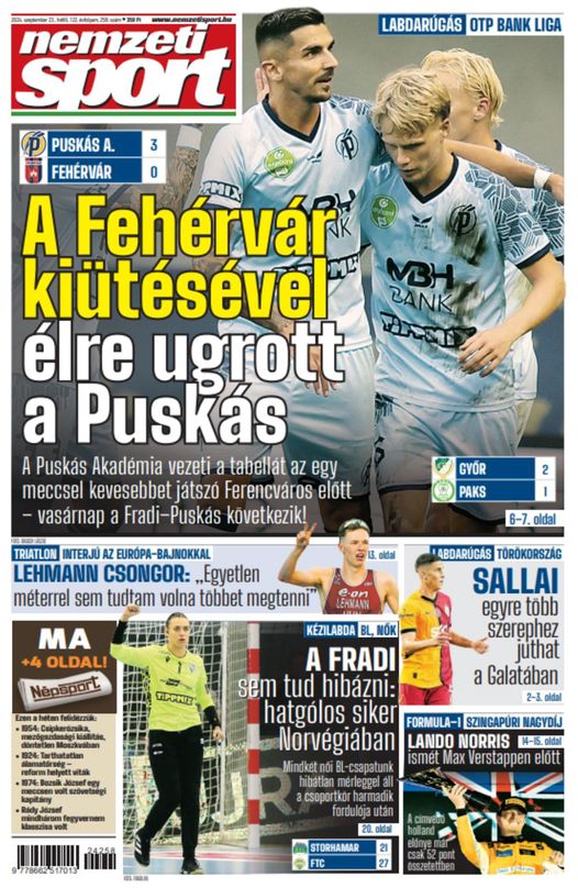 A Fehérvár kiütésével élre ugrott a Puskás; Sallai egyre több szerephez juthat – a hétfői Nemzeti Sportból ajánljuk: https://buff.ly/3XDtJBw