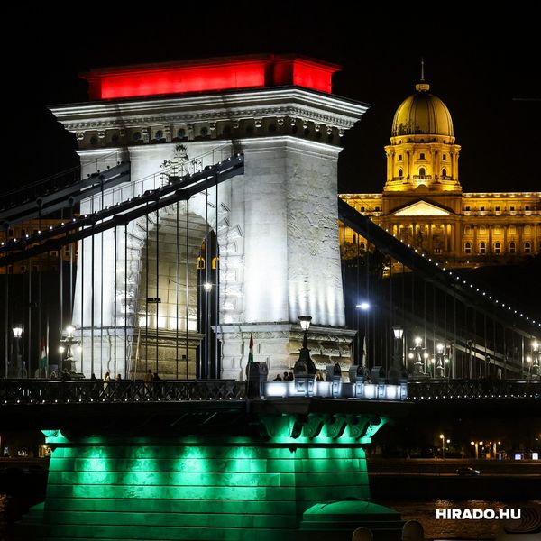 Nemzeti színű ünnepi fényfestést kapott a Lánchíd az 1956-os forradalom és szabadságharc 68. évfordulója alkalmából.