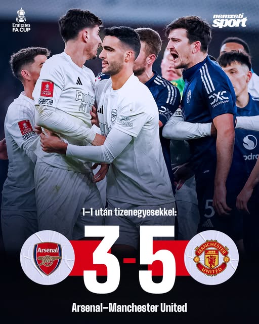 Volt itt kiállítás, kihagyott büntető, végül tizenegyesekkel dőlt el: a Manchester United kiejtette az Arsenalt az FA-kupából!