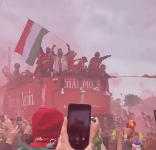 Szoboszlai Dominik nemzeti lobogóval ünnepelt Liverpoolban.
