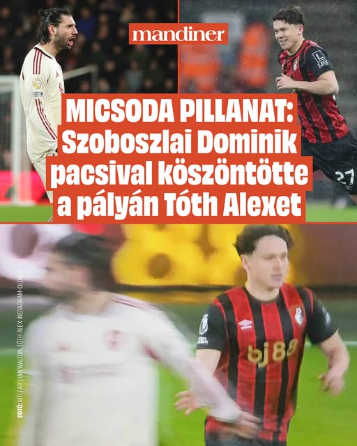 Tóth Alex debütált a Premier League-ben, ami után Szoboszlai Dominik lepacsizott vele a pályán. Magyar szívnek megható fotó a Bournemouth–Liverpoolról. ❤️