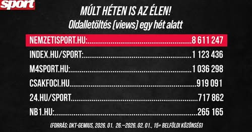 A 2026. január 26-tól február 1-ig tartó időszakban több mint 8.6 millió oldalt töltöttek…