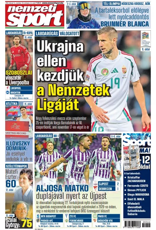 Szoboszlai Dominik visszatér; Mátéfi Eszter 60, Szalai György 75 éves – a Nemzeti Sport szombati számából ajánljuk: https://buff.ly/x9cX6Pk