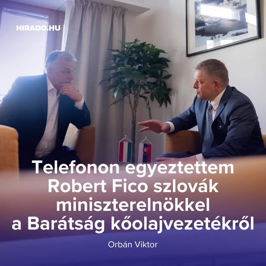 Orbán Viktor telefonon egyeztetett Robert Ficoval a Barátság kőolajvezetékről.