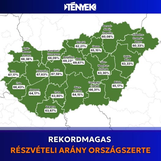 A Nemzeti Választási Iroda legfrissebb adatai szerint 15:00-ig a szavazásra jogosultak 66.01%-a járult az urnákhoz.