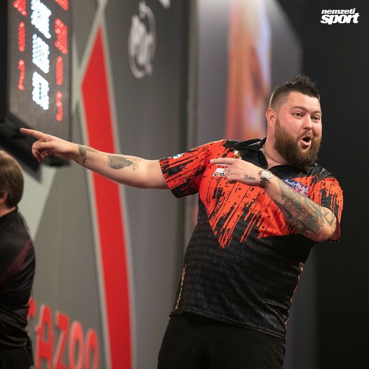 Michael Smith összehozta a kilencnyilast. Michael van Gerwen egy nyílra volt.
