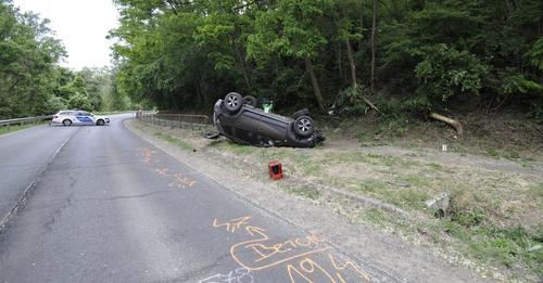 Az egyik autó fel is borult.