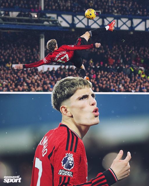 Garnacho óriási ollózásával szerzett vezetést az Everton ellen a Manchester United. 👊🔴