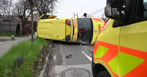 Felborult egy mentőautó, miután összeütközött egy személyautóval Budapesten, a XVIII. kerületben…