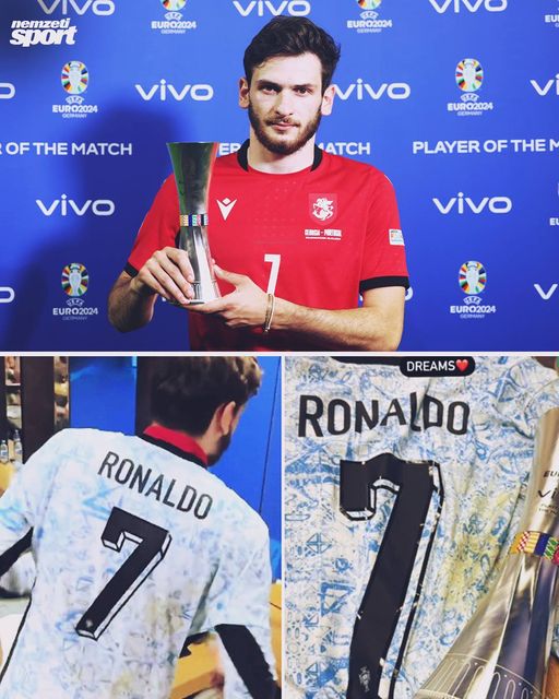 Hvicsa Kvarachelia lett a grúz–portugál meccs legjobbja, és valóra vált az álma is, megkapta Cristiano Ronaldo mezét a lefújás után.