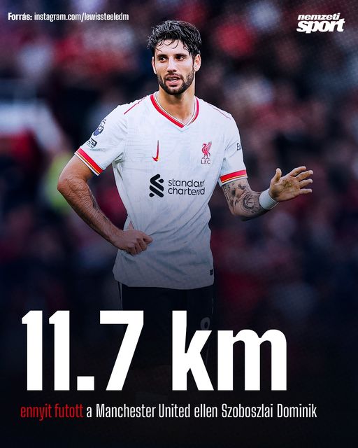 Ezzel az idény eddigi három bajnokiját figyelembe véve Szoboszlai Dominik futotta a legtöbbet egy meccsen a Liverpool játékosai közül! 💪