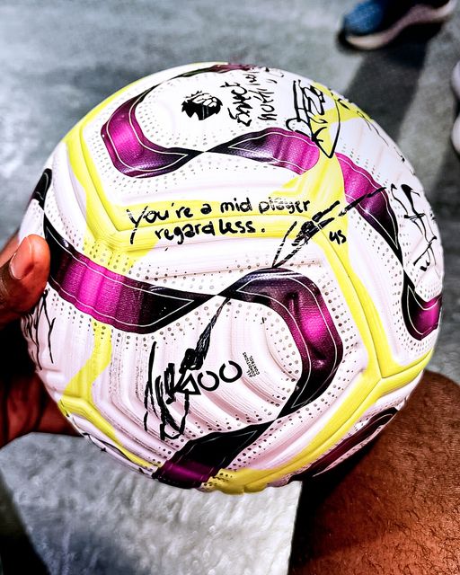 A Chelsea–Brightonmeccsen négy gólt szerző Cole Palmer aláíratta a csapattársaival a meccslabdát. A belga védekező középpályás, Roméo Lavia csak ennyit írt: „Ettől függetlenül középszerű játékos vagy…