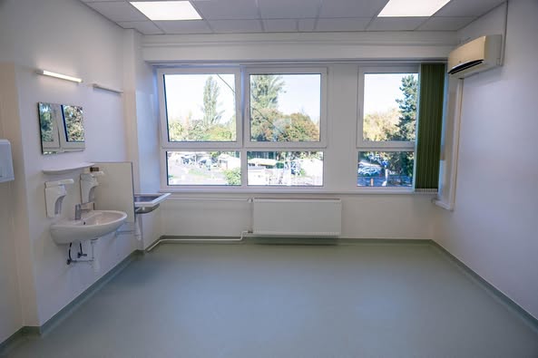 👉 A folyosók és kezelők korszerű, könnyen tisztítható burkolatot kaptak.