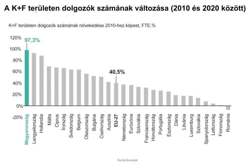 1️⃣0️⃣ év alatt a kutatói és fejlesztői munkahelyek száma megduplázódott Magyarországon, és ezzel a legnagyobb arányban nőtt az EU-ban.