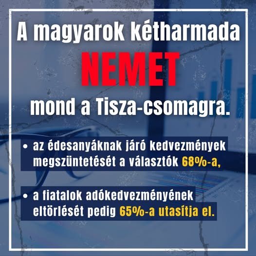 A magyarok kétharmada nemet mond a Tisza-csomagra.