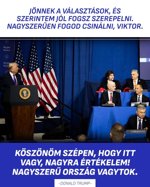 Donald Trump a Béketanács alakuló ülésén Washingtonban ismét megerősítette, hogy teljes mértékben támogatja Orbán Viktor miniszterelnököt a választáson.