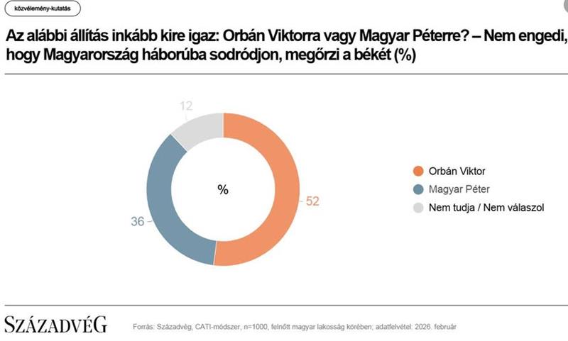 A magyarok több mint fele szerint Orbán Viktor nem engedné háborúba sodródni az országot, és meg tudná őrizni a békét.