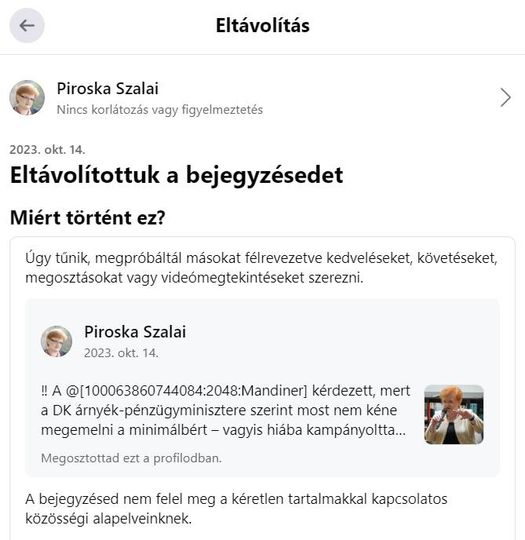 Ítram egy bejegyzést a mai Mandiner interjúmról, s pár percen belül eltávolították, íme ezt az üzenetet kaptam: