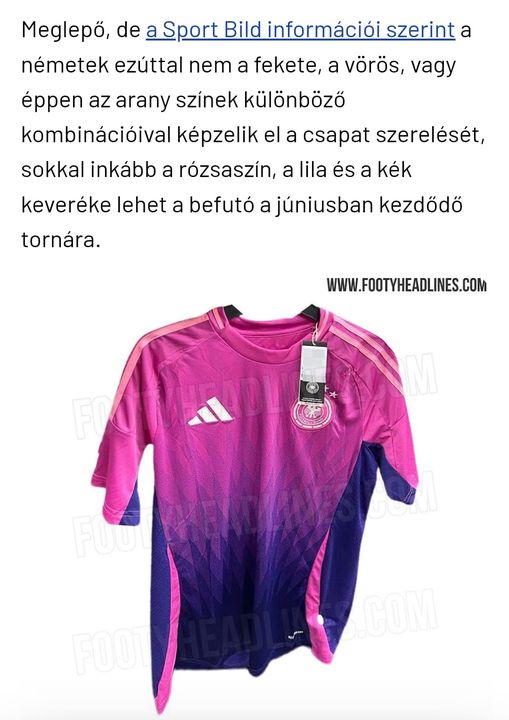 Németország fociválogatottja rózsaszín mezben léphet pályára a nyári Európa-bajnokságon az idegenben játszott meccsek alkalmával.