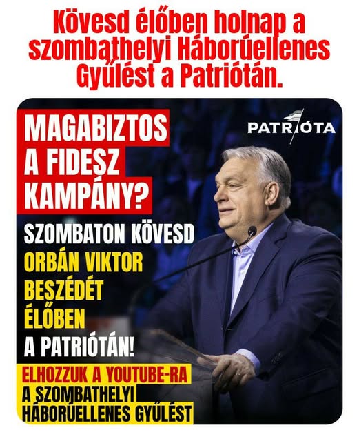 ️ Kövesd élőben holnap a szombathelyi Háborúellenes Gyűlést a Patriótán.