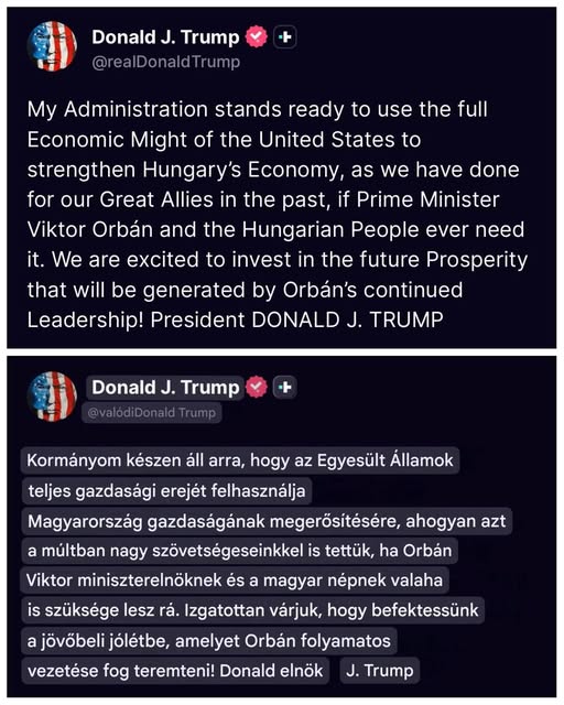 Trump is Magyarországra figyel, és Orbán Viktornak szurkol! Közösségi oldalán írta azt, hogy a magyar gazdaság felvirágoztatása a célja Orbán Viktorral! Amerika Magyarország sikerben érdekelt!