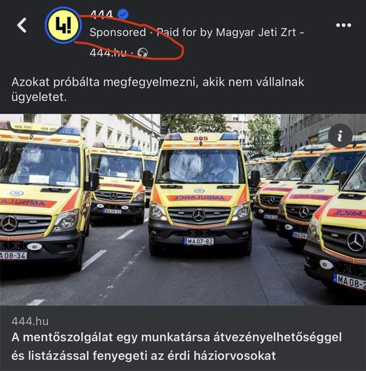A 444 (és úgy általában a baloldali sajtó) számára a mentőszolgálat lejáratása olyan kiemelt jelentőséggel bír, hogy hirdetik a róluk szóló írásukat.