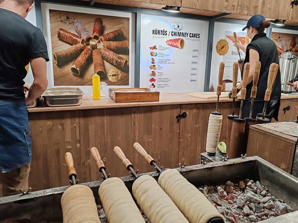 Hatalmas sor a kürtőskalácsèrt, amiből a legolcsóbb is 2500Ft ezen a helyen.
