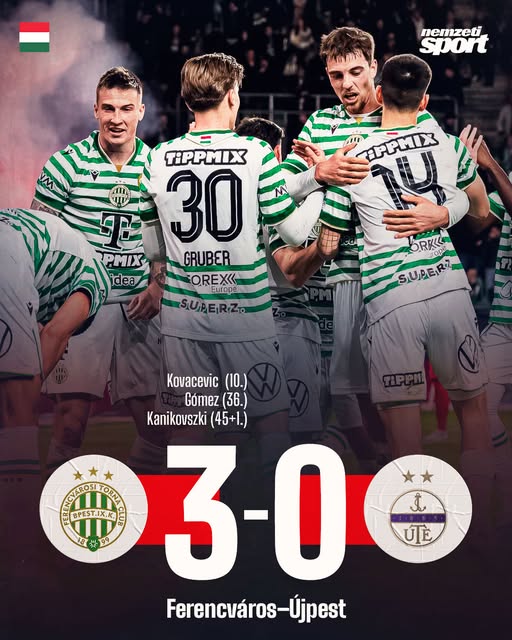 Már az első félidőben eldőlt: a Ferencváros 3–0-ra legyőzte az Újpestet. 👏🟢
