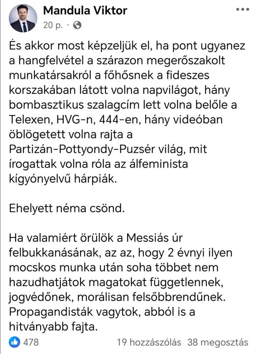 Ennél tökéletesebb posztot még nem láttunk a dollármédiás, kettős mércés, mérőverás, nővédős, noáros, pottyondis, perintfalvis, tibiatyás bagázsról.
