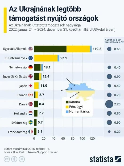 Az alábbi diagramomról az olvasható le, hogy az egyes országok és Brüsszel milyen mértékben járultak hozzá a háború finanszírozásához 2022-2024 között – ebből egyértelműen kiderül, hogy miért…