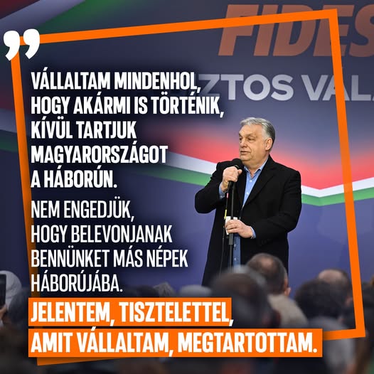 Orbán Viktor hódmezővásárhelyi nagygyűlésén: vállaltam mindenhol, hogy akármi is történik, kívül tartjuk Magyarországot a háborún.