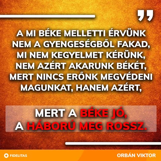 ️ A mi béke melletti érvünk nem a gyengeségből fakad, mi nem kegyelmet kérünk, nem azért akarunk békét, mert nincs erőnk megvédeni magunkat, hanem azért, mert a béke jó, a háború meg rossz. - Orbán…