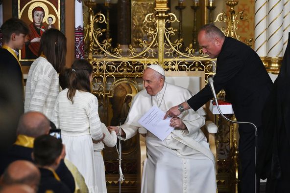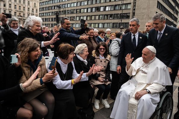 Ferenc pápa a Bazilikában találkozott a katolikus egyház képviselőivel, majd spontán csatlakozott a téren összegyűlt hívekhez.